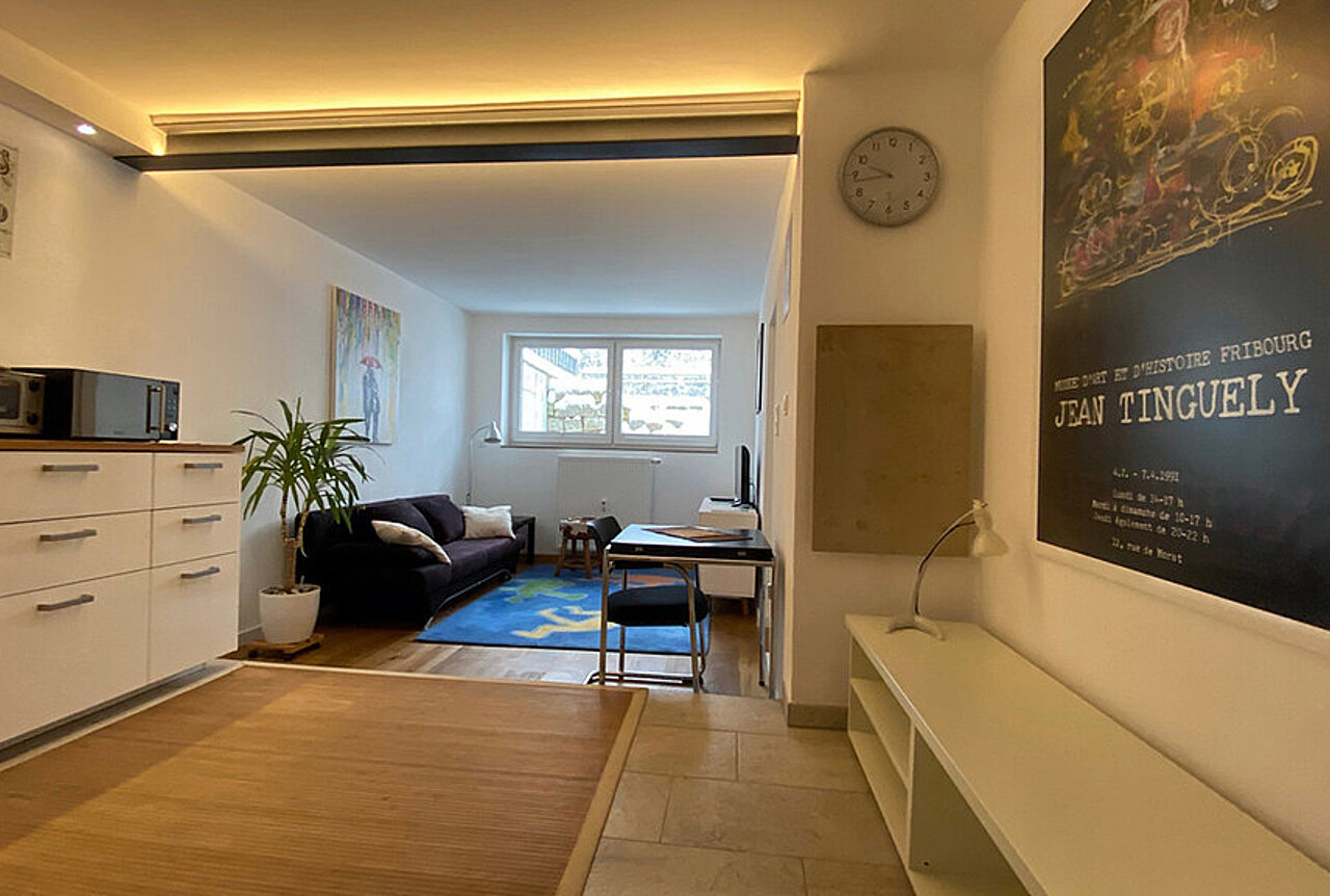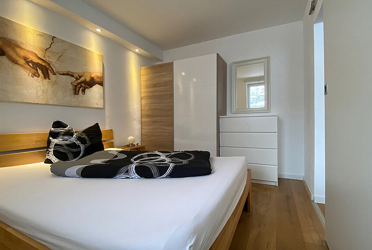 1 Schlafzimmer, 1 Wohnraum mit Schlafsofa, komplett ausgestattete Küche, Bad/WC